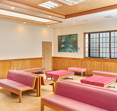 広い調剤スペース、広い待合室